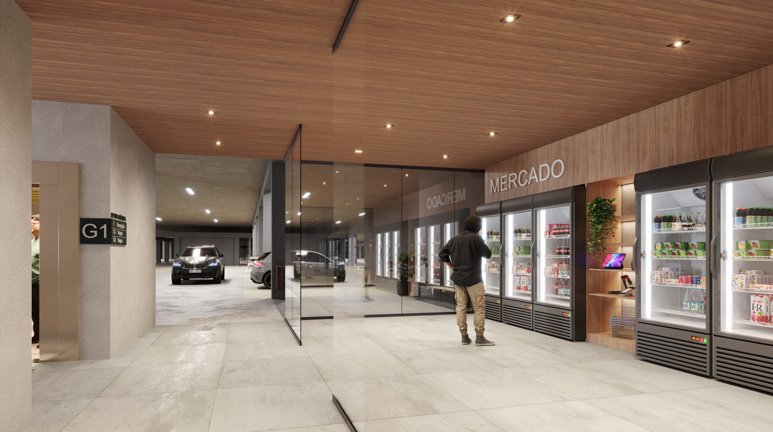 No pavimento térreo do setor temos o total de 512 vagas privativas (1 a 2 vagas por unidade) + 3 vagas PCD. Neste setor temos dois subsolos com o total de 1099 vagas autônomas + 60 vagas de idoso + 24 vagas PCD.